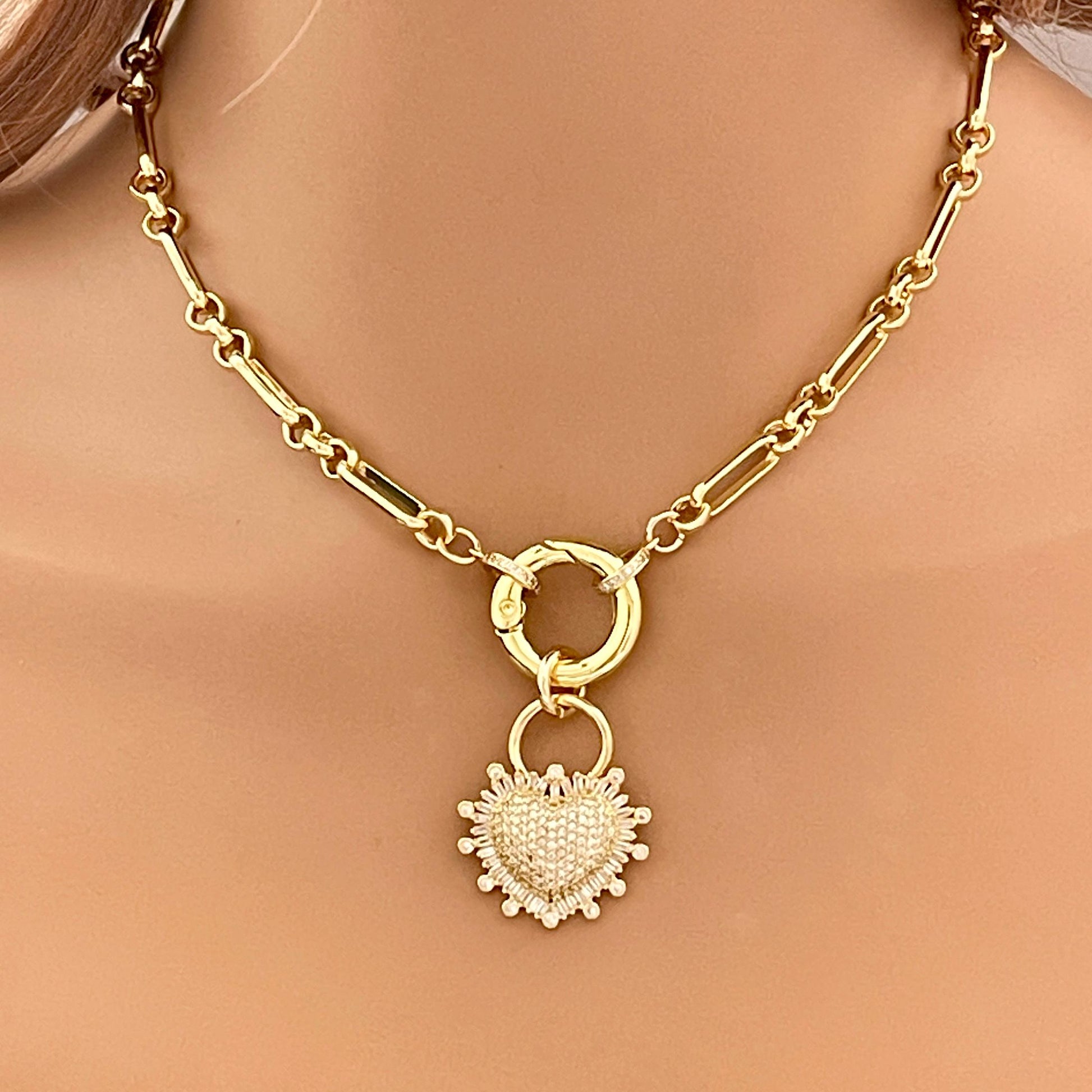 Add a touch of sparkle to your everyday look with this elegant gold multi-link chain necklace, featuring a dazzling micro pavé heart pendant. A modern chain with the heart pendant encrusted with shimmering micro pavé stones brings just the right amount of romance and shine. Perfect for layering or wearing solo, this dainty piece blends timeless charm with contemporary style.